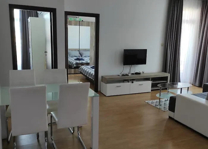 Pour profiter de vos vacances à Tŭnkovo, séjournez à Double Cream Apartment Tŭnkovo de 70 m^2, qui se trouve à 6 km d'Ancienne cité de Nessebar et à 3 km du Parc aquatique Aqua Paradise. L'appartement dispose d'une piscine privée et d'une terrasse pour le confort des hôtes.